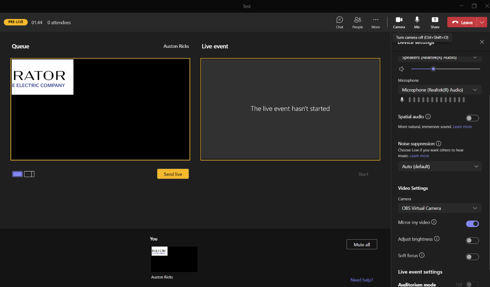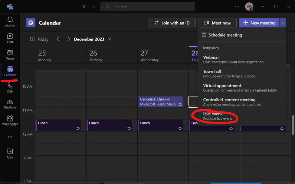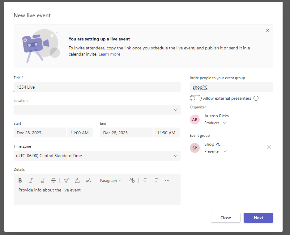 Start Teams Live Event