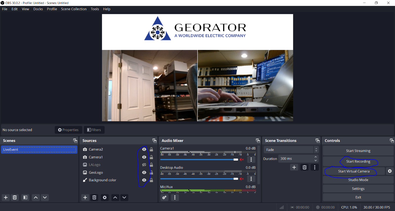 2.) Select the virtual camera as your camera