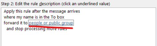 6. Under Step 2: Edit the rule description, select the people or public group link.
