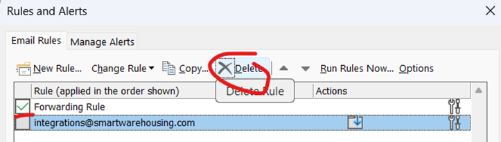2. Check ONLY the rule you’d like to delete and select Delete.